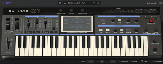 Arturia还原CZ-V的时候,把包络、滤波器、LFO很直观的进行了图形化,操作更加方便,将复音数变成了原本硬件的4倍,还有大量的预置音色,如果你实在对于自己合成音色比较烦躁,那可直接选取预置的音色进行创作。