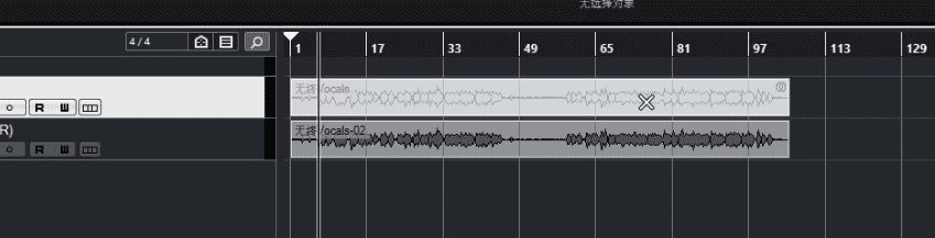 白色的波形是被静音的波形,需要注意的是,这里静音的只是这个波形,而不是这个轨道。这个轨道中插入的效果器插件都还是正常能工作的,其中包括了Melodyne,所以即使波形静音了,Melodyne依然在工作,所以还是有声音。你想要彻底静音这一轨,需要按“m”静音整个轨道。