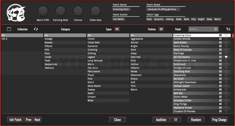 AN AUTHENTIC OB-X WITH VAST SOUND DESIGN POSSIBILITIES