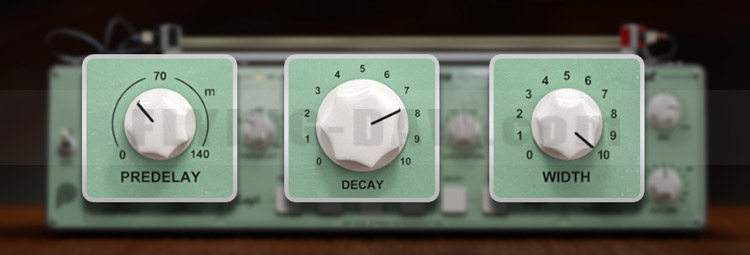 The Predelay and Decay knobs offer precise temporal adjustments to the reverb effect.