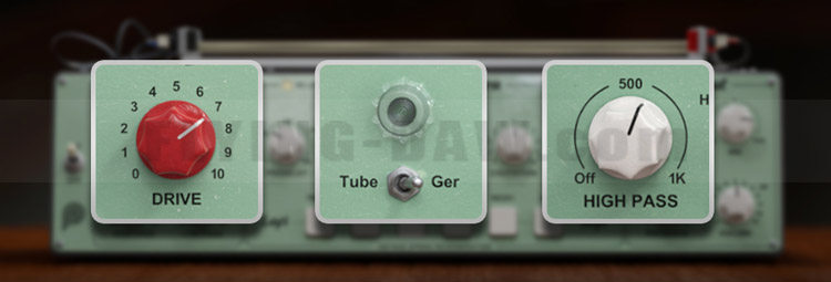 for a pronounced high-frequency saturated sound with the Drive knob.