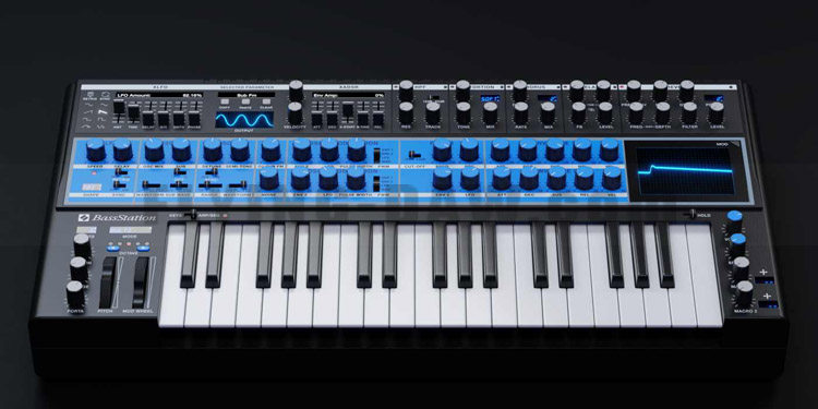 The Novation Bass Station, with its fully resizable UI, powerful Preset Browser, Scope,