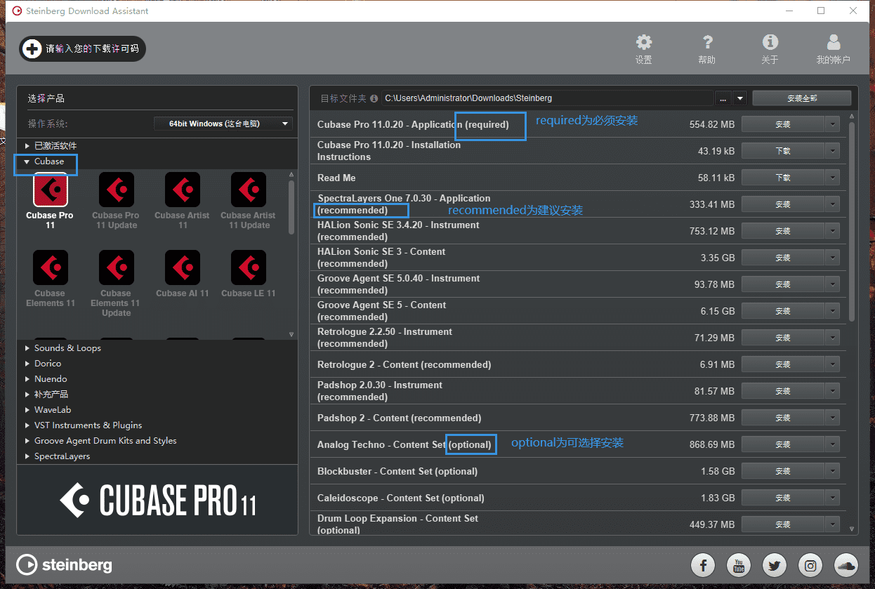 上个月购买了盒装正版cubase11教育版,用起来没问题,就是我发现很多小伙伴说有送的插件和音源,为啥我安装就没有,是要用官方的那个下载器去单独下载吗? 新人求解答谢谢