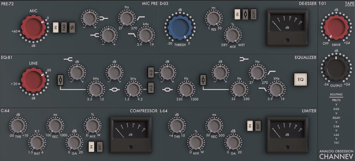4 频段均衡器、压缩器、限制器和磁带饱和的终极通道条!